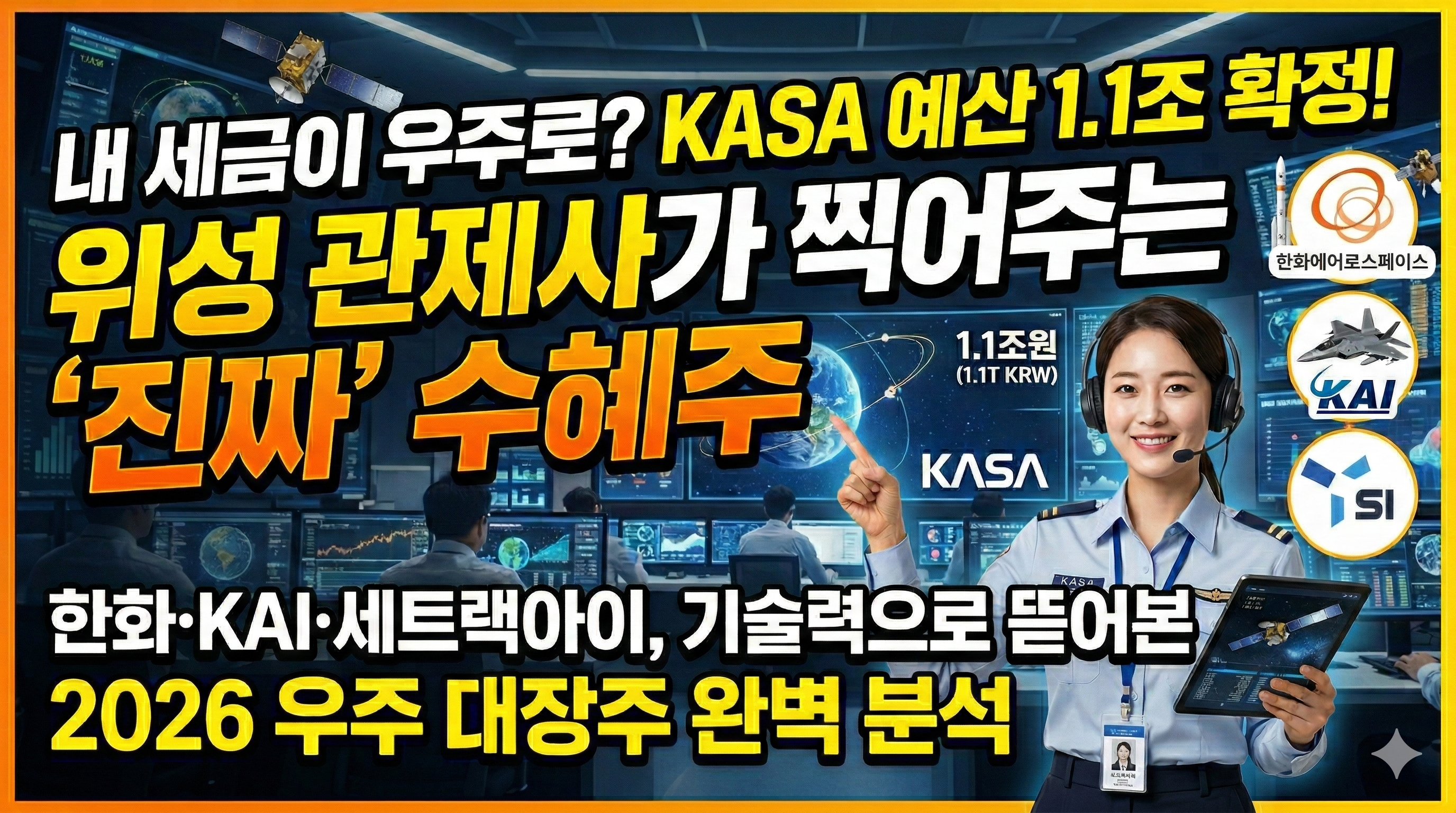 안녕하세요! 우주 궤도 위의 위성들을 매일같이 지켜보는 위성 관제사의 시선으로 본 우주 경제 이야기, 지금 시작합니다. 2026년 대한민국 우주항공청(KASA)의 예산이 드디어 1.1조 원을 돌파했습니다. 여러분, 1.1조 원이면 치킨을 약 5,500만 마리나 시켜 먹을 수 있는 거액입니다. 이 엄청난 세금이 하늘로 쏘아 올려지는데, 우리 주식 계좌도 같이 날아올라야 하지 않겠습니까?